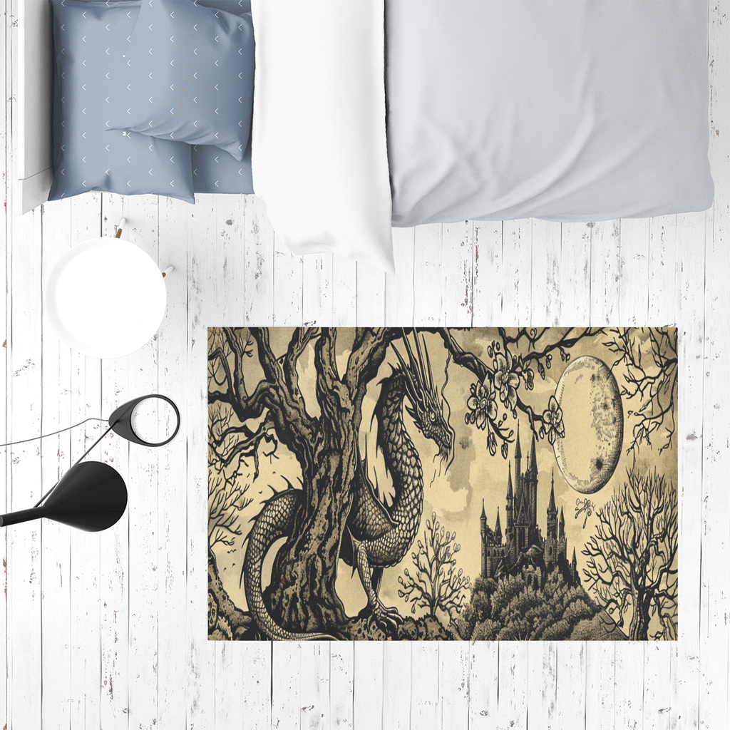 Turn your ordinary space into mystical with this mat featuring the Dragon from our Moonbound Collection. Perfect for tarot reads, beside the bed, by your altar, as a mat for offerings for your familiar or as a playmat for your gothic art loving little ones.