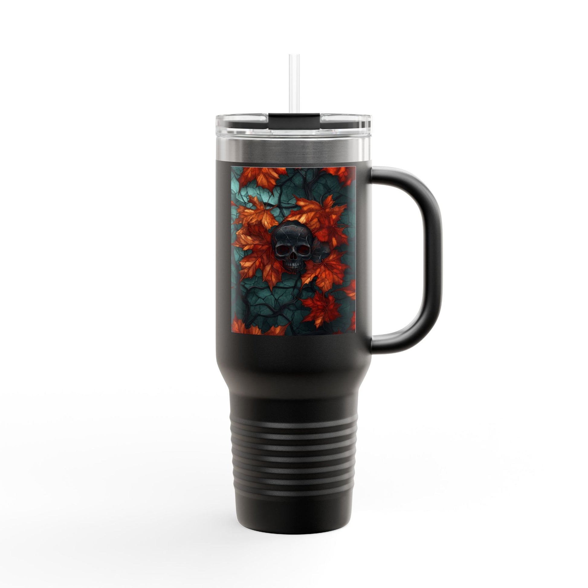 This versatile Insulated Travel Mug that combines style and functionality, while featuring the Fall Leaves and Skull design that matches the candle and the journal with the same name. With a robust 40oz capacity, it’s perfect for adventurers or anyone on the go. Keep your favorite beverages hot or cold for hours, thanks to the double-wall insulation. The sleek, ergonomic handle ensures a comfortable grip during those long hours on the road. Imagine sipping your drink without the worry of spills, thanks to its leak-proof lid. This travel mug fits seamlessly into your active lifestyle, whether for weekends at the beach, hiking trips, or daily commutes. Perfect as a gift for outdoor enthusiasts, students, or busy professionals. Celebrate milestones or everyday moments with this must-have accessory for coffee lovers and tea drinkers alike during holidays, road trips, or picnics!