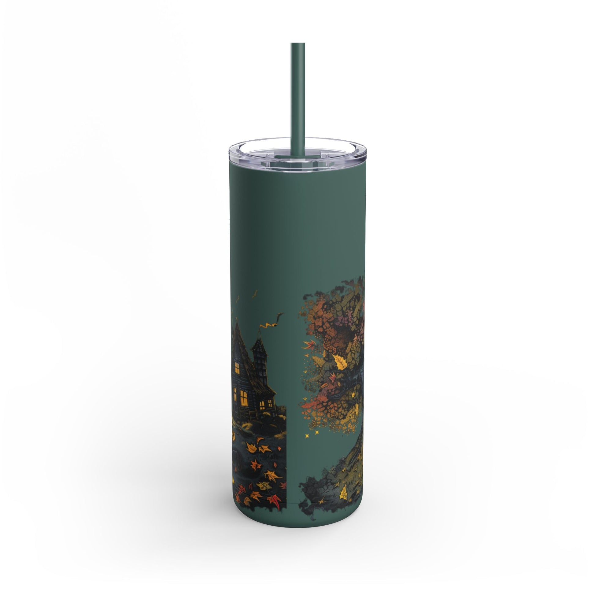 Stay refreshed and stylish with this vibrant 20oz Skinny Matte Tumbler. Ideal for both hot and cold beverages, it adds a delightful touch to your everyday routine. The charming design evokes a cozy, spooky season vibe, making it perfect for sipping pumpkin spice lattes or iced drinks during crisp fall days. This tumbler suits anyone who loves to elevate their drinkware with artful designs, especially during holidays like Halloween and Thanksgiving. A cute gift for friends, family, or yourself, it embodies practicality without sacrificing flair, making any occasion feel special.